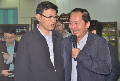 11月28日上午,冒著寒綿冬雨,踩著泥濘大地,省長蔣定之帶領參加全省品牌農業發展推進大會的代表考察了我司文昌廠區,公司黃春光董事長等相關領導陪同介紹。