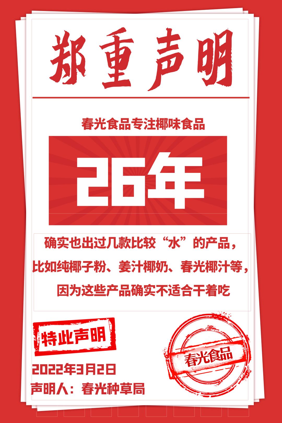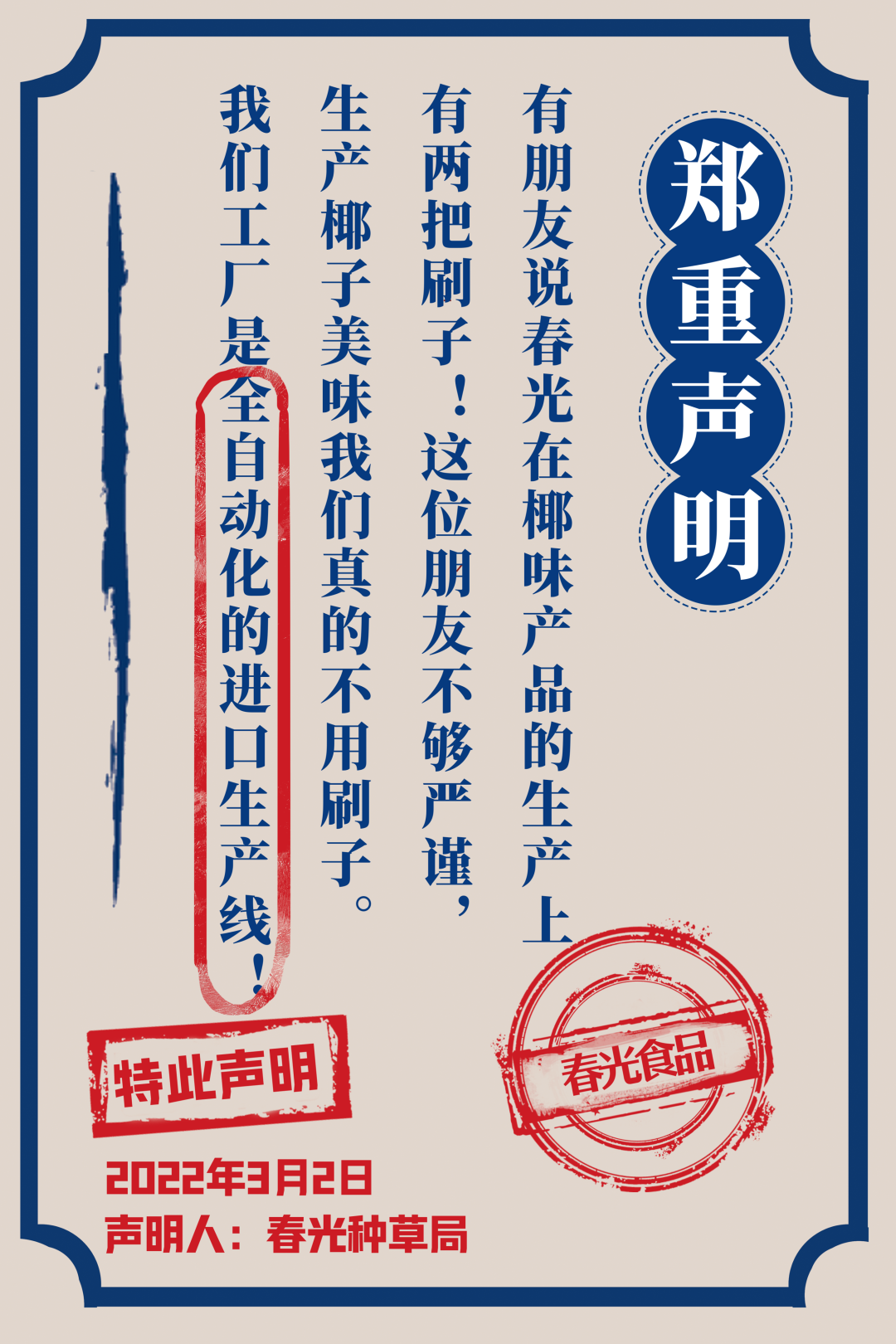 在新品官宣期間,春光食品連發26條新品聲明,用簡單粗暴又不失趣味性的文案高效傳遞了品牌態度與產品賣點,在大量地圍觀和傳播擴散之下,聲明文案成功地吸引了廣大網友的注意力。據了解,接下來春光食品還將開辦線下品鑒會快閃店、圍繞產品設計ip卡通等一系列年輕化動作。